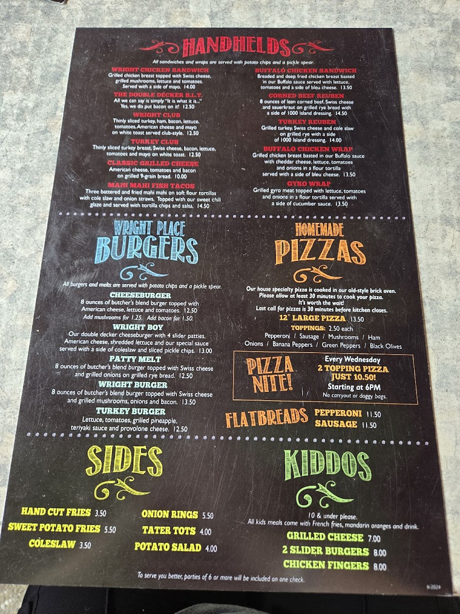 Welcome to Wright Place, a culinary gem nestled in Willoughby Hills, Ohio. This vibrant eatery specializes in handheld delights, boasting a menu that promises something for everyone. Indulge in the mouthwatering Wright Chicken Sandwich or the savory Double Decker B.L.T. for a satisfying meal. The burger selection is equally tantalizing, featuring choices like the classic Cheeseburger and the unique Wright Boy.